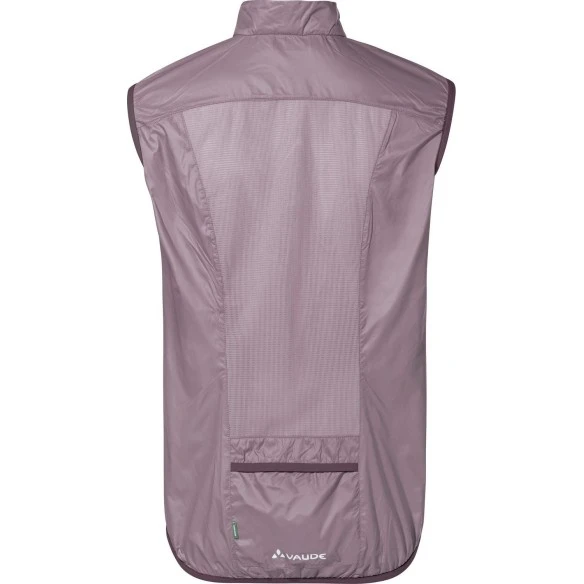 Un toque de nada. El chaleco cortavientos ultraligero protege los hombros y el pecho del enfriamiento, mientras que la inserción de malla elástica en la espalda garantiza una ventilación óptima. El chaleco está fabricado con un material respetuoso con el medio ambiente y está certificado según el estricto estándar ambiental bluesign® system; ¡El tamaño y el peso del paquete son simplemente imbatibles! Este producto está fabricado con Eco Finish repelente al agua y ecológico sin fluorocarbonos (PFC). La etiqueta VAUDE Green Shape representa un producto funcional y respetuoso con el medio ambiente fabricado con materiales sostenibles.